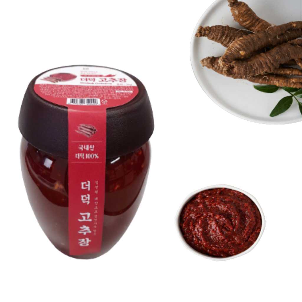 • Được làm từ củ Sâm Đất (deodeok) 3 năm tuổi, đặc sản của Hoengseong, Gangwon, ủ chung với ớt Gochungjang truyền thống.