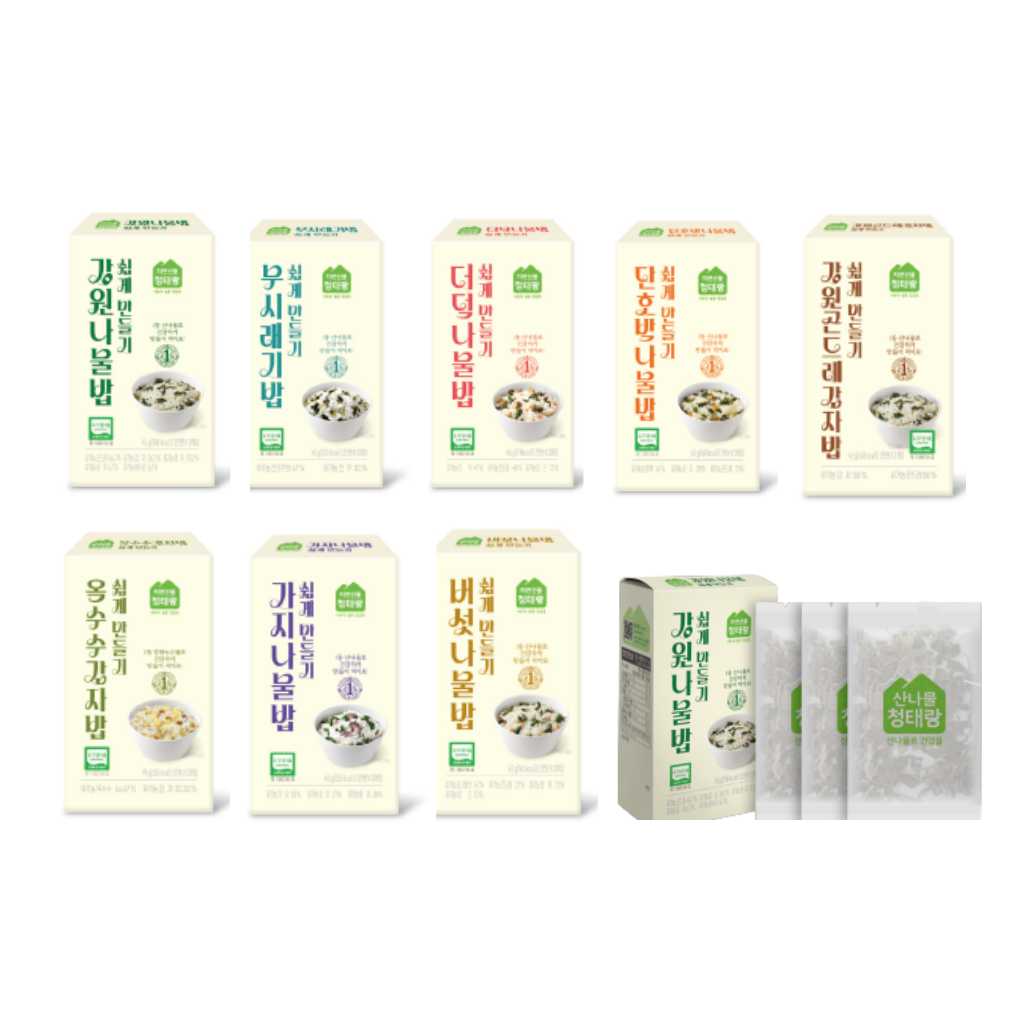 • Meal-kit làm từ rong biển cùng với các loại rau củ tự nhiên gồm nhiều vị như củ cải, rau Codonopsis, bí ngọt, khoai tây, bắp – khoai tây, cà tím và nấm, deodeok,…