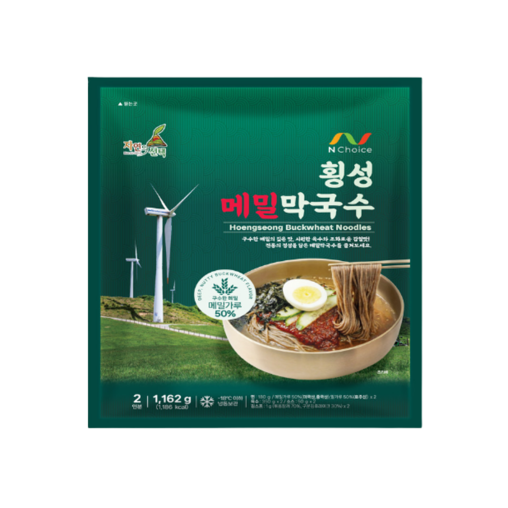 • Mì kiều mạch Hoengseong được làm từ ngũ cốc sạch của vùng Hoengseong, nổi tiếng với môi trường tự nhiên trong lành.